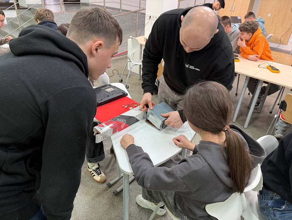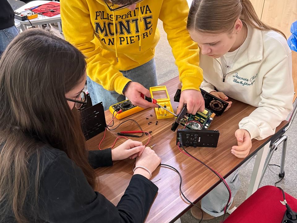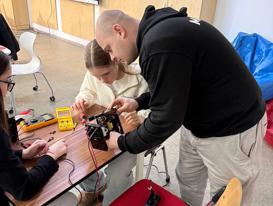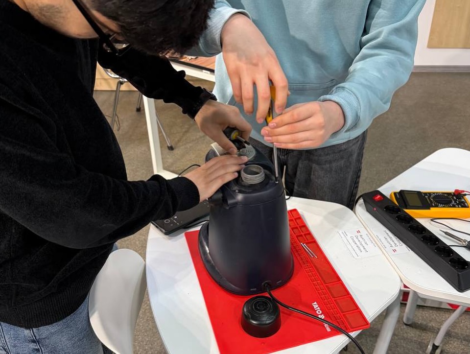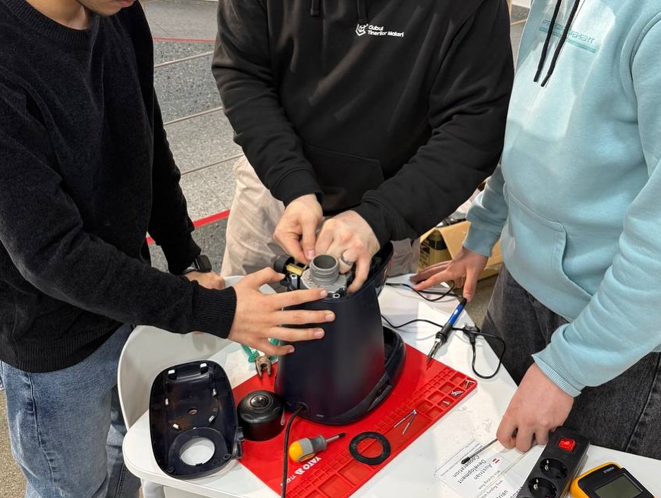 Pe lângă reparații, elevii au învățat cum se folosește corect ciocanul de lipit și alte unelte esențiale — experiență practică autentică, cu multă curiozitate, „Aha!”-uri și satisfacția aceea specială când un obiect reparat de tine pornește din nou. ![]()