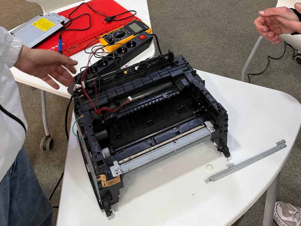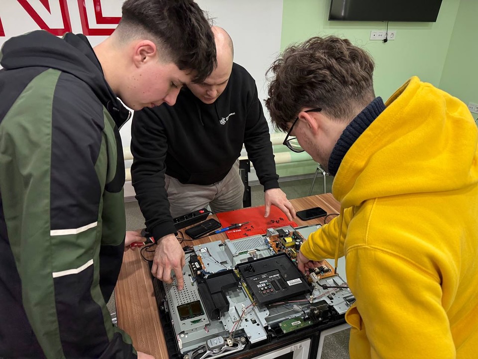 Pe mesele de lucru au ajuns mai multe dispozitive electrice defecte, iar provocarea a fost una clară: să le aducem din nou la viață prin reparație și lucru practic.